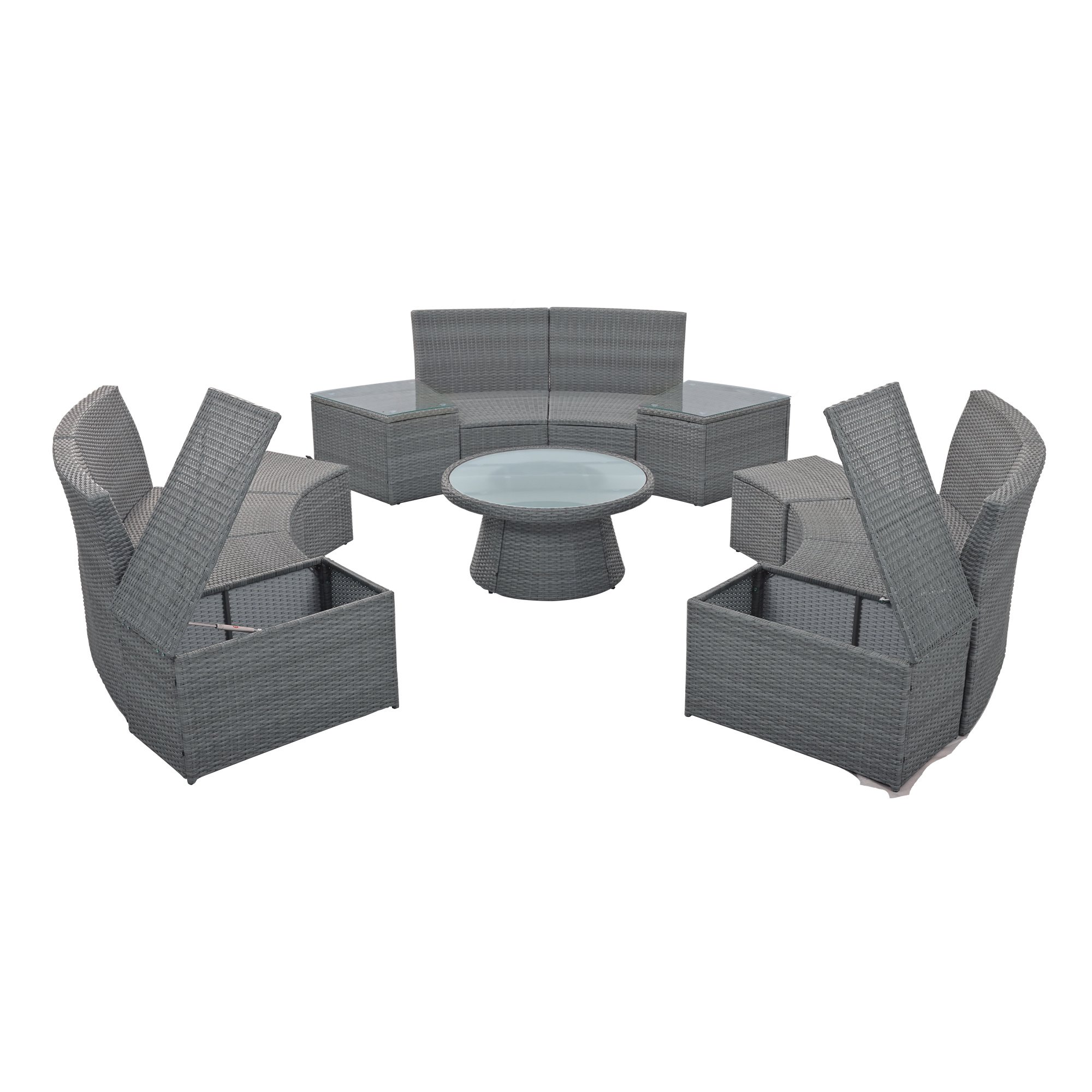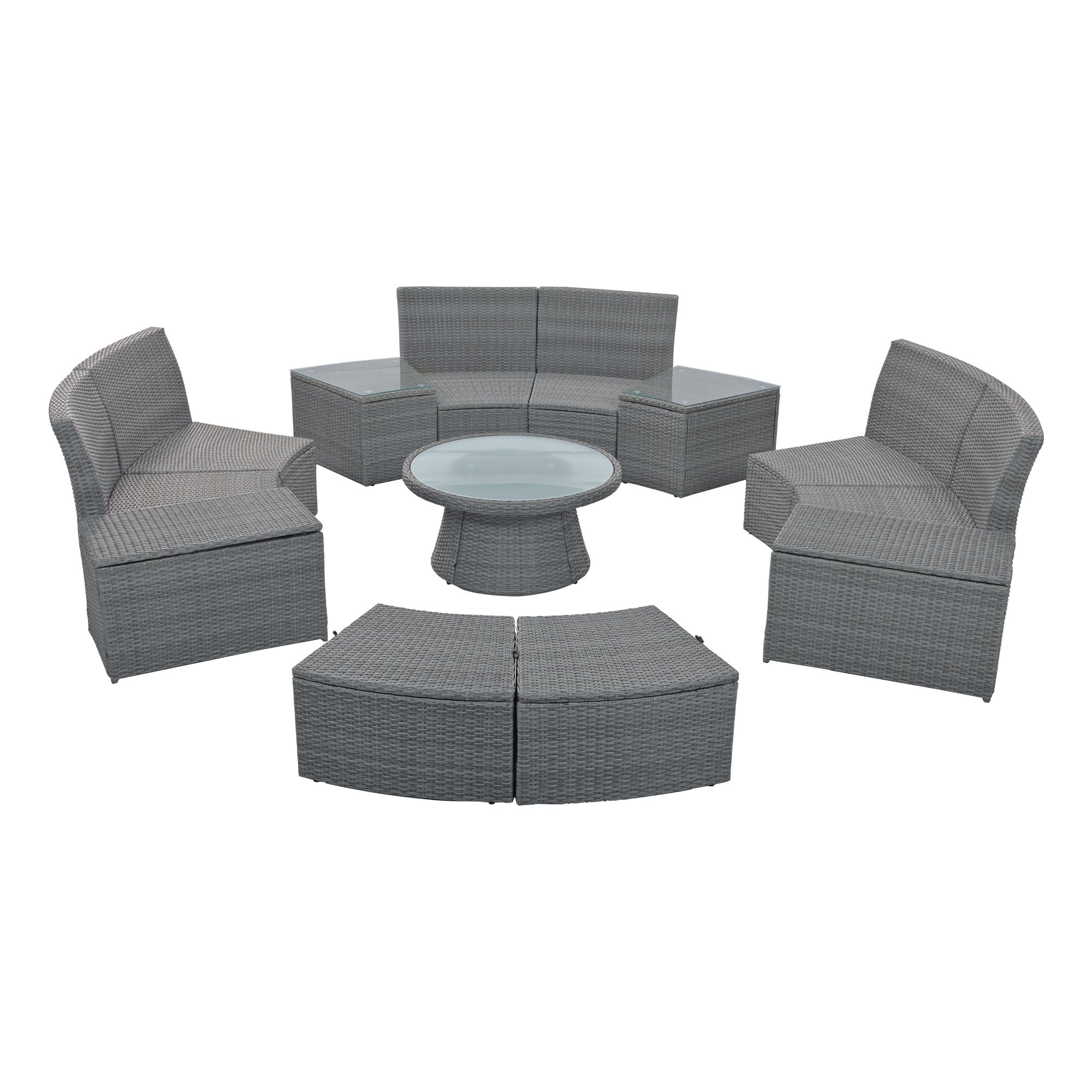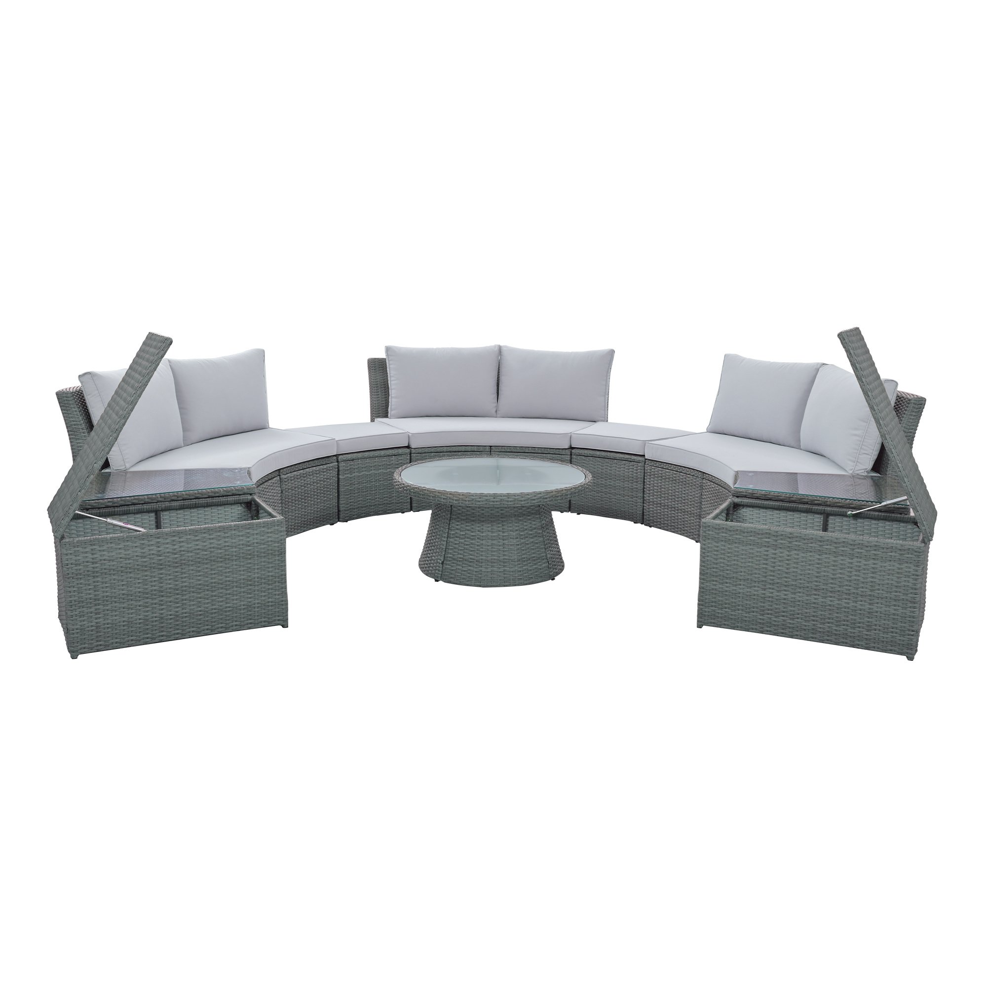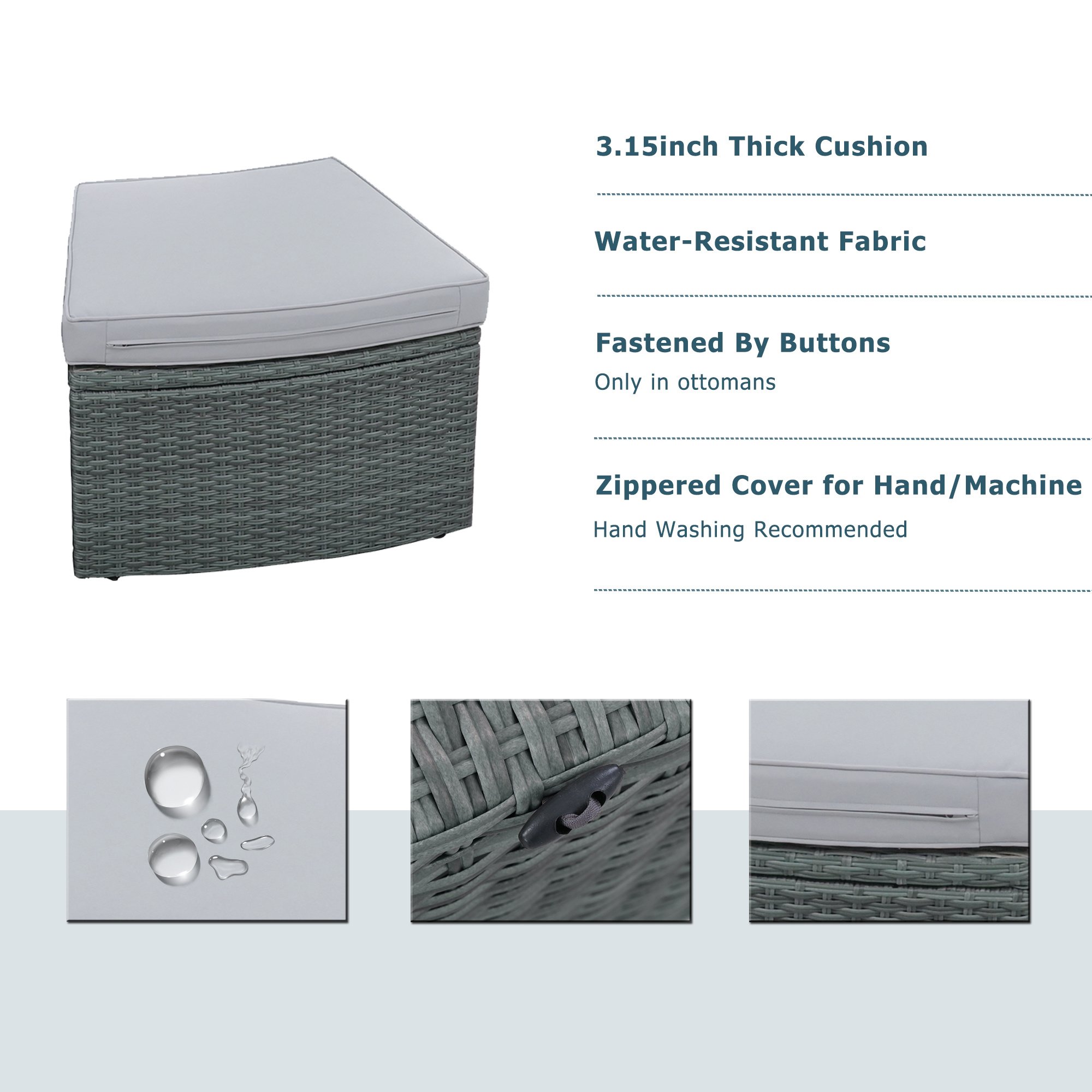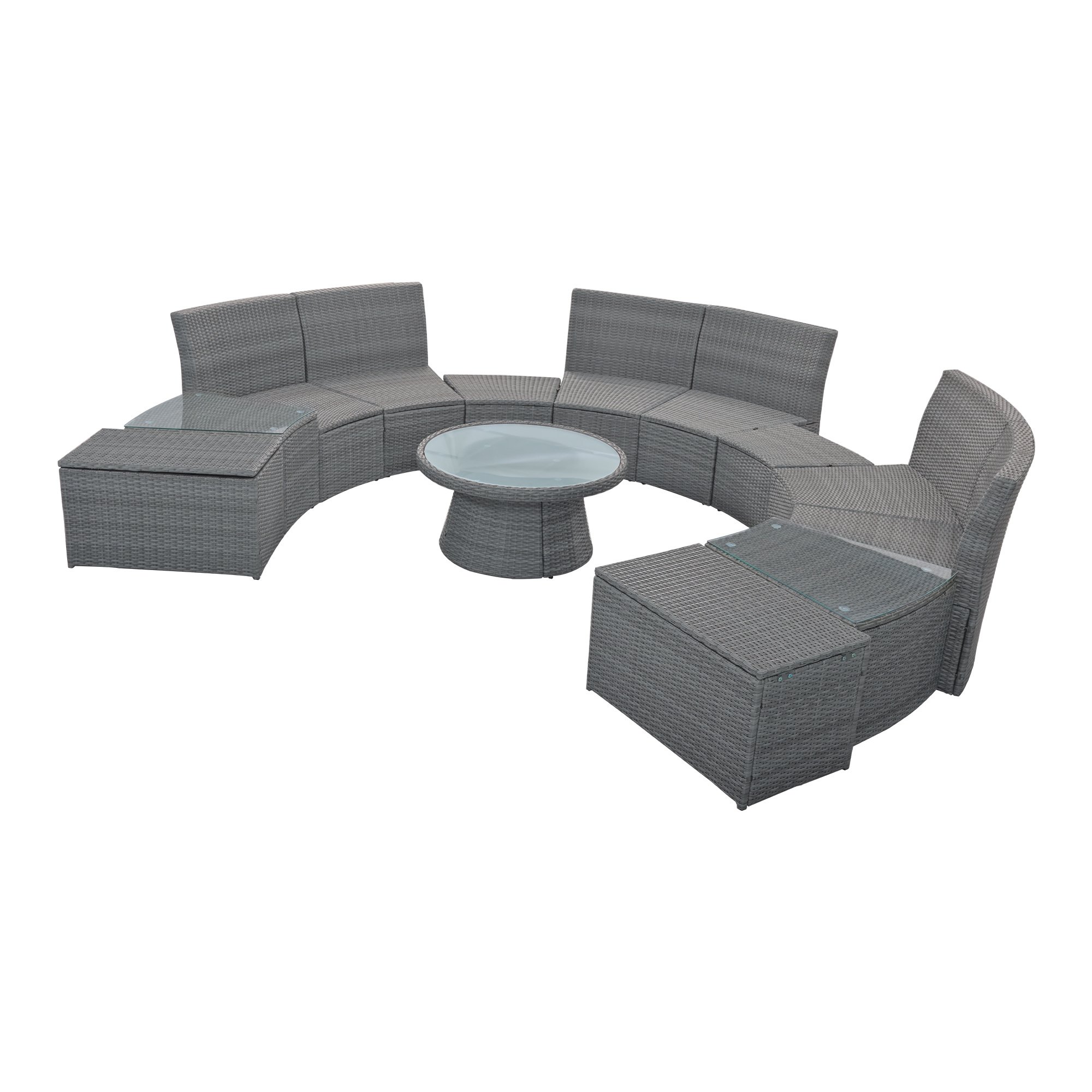 Home > 10-Piece Outdoor Sectional Half Round Patio Rattan Sofa Set, PE Wicker Conversation Furniture Set for Free Combination, Light Gray