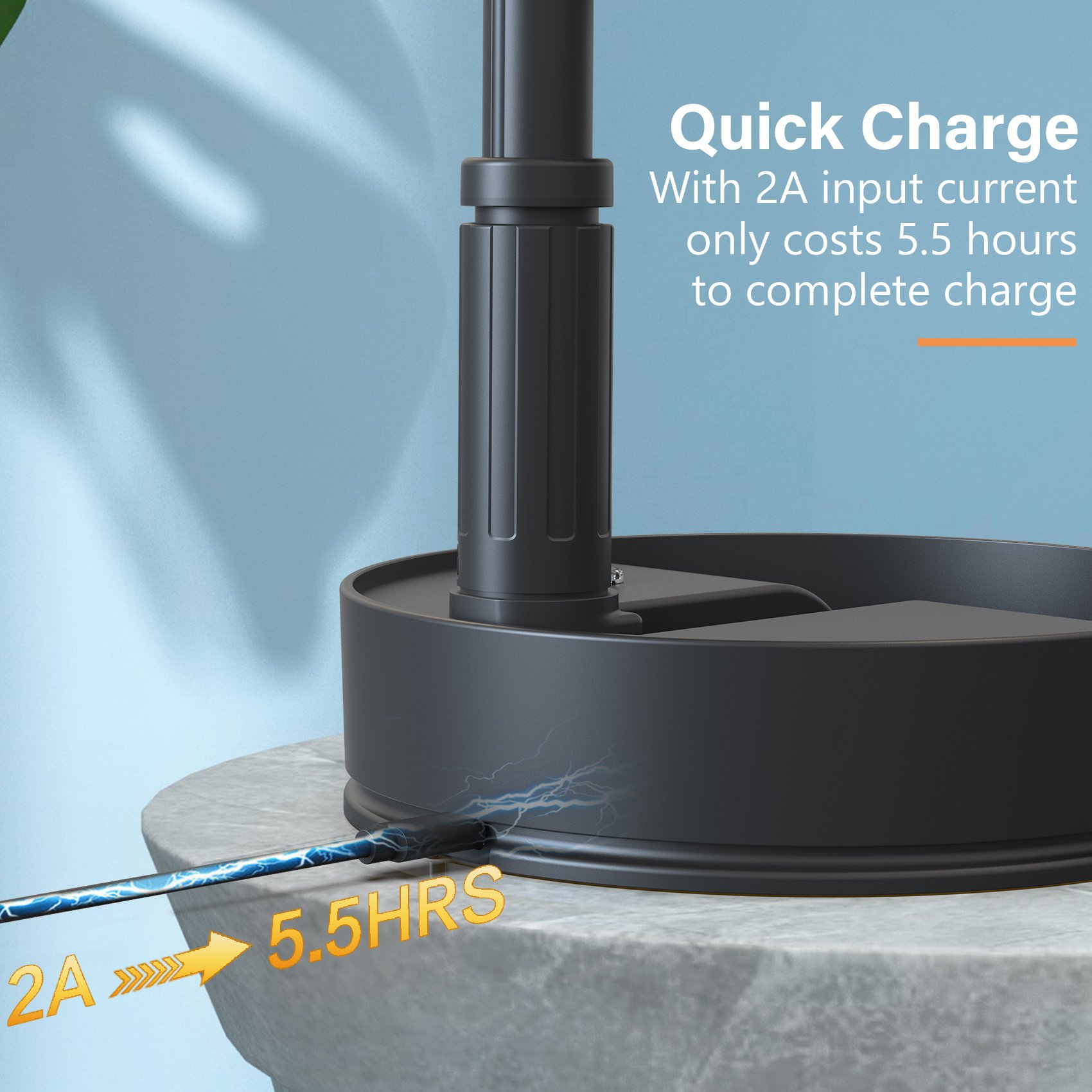 7200mAh Rechargeable Battery Powered - Working time lasts up to 11.5 hours after full charge. Supplied with micro USB 2A fast charging facility.