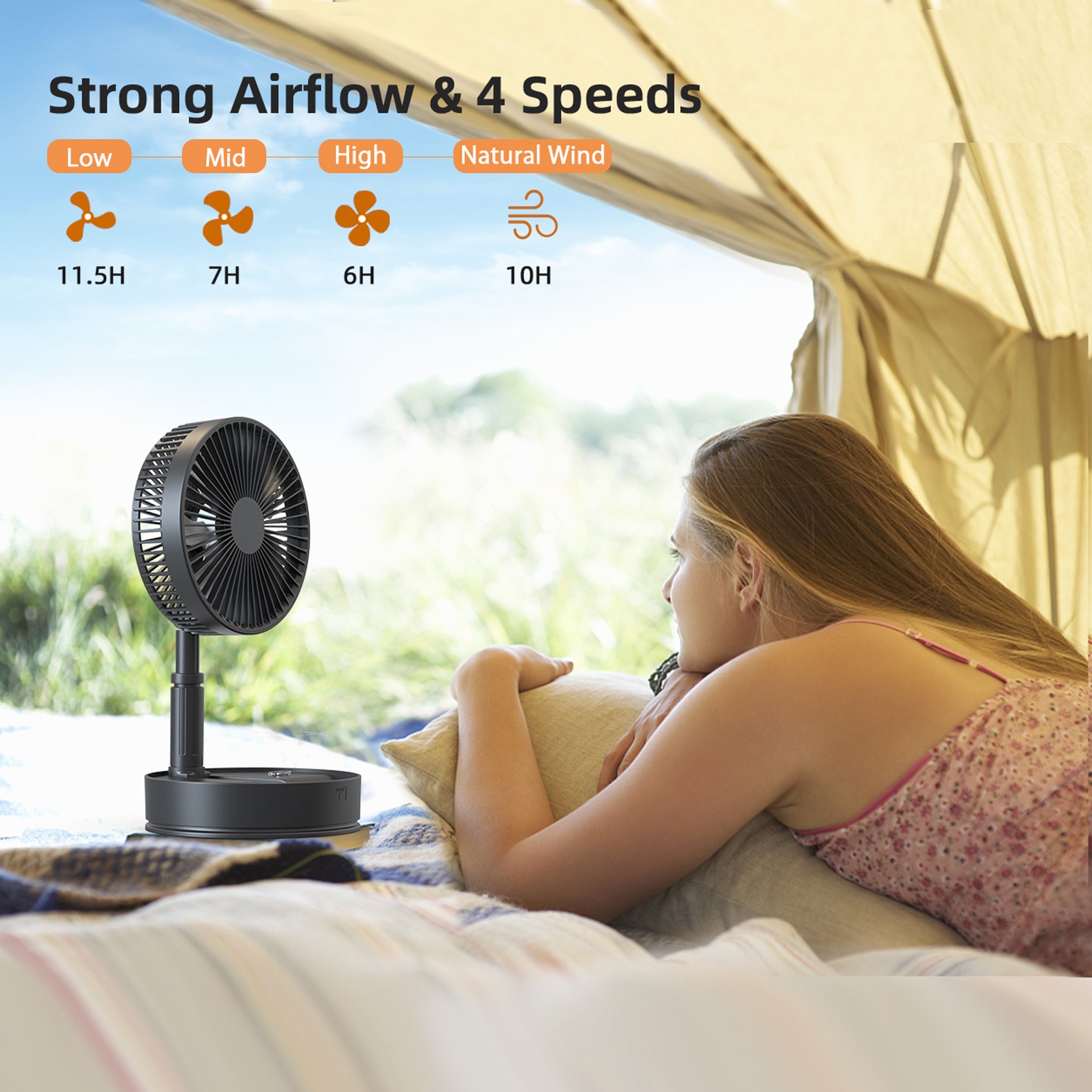 Upgraded Foldaway Design - Adopt the newest foldaway technology; flexible adjustment of fan structure; the height adjustment range is 4-40 inches. You can store the fan in the drawer; also can enjoy the airflow when you are standing.