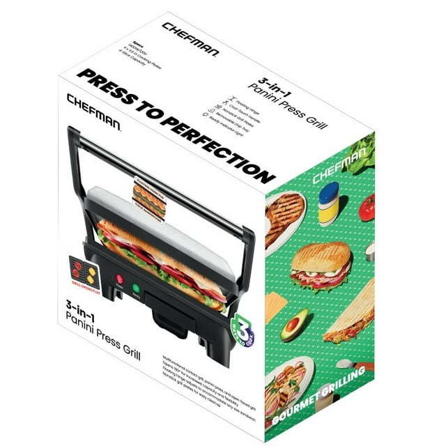 Home > Chefman 3-in-1 Electric Indoor Panini Press & Grill, 4-Slice Sandwich Press, Opens 180° for Grilling