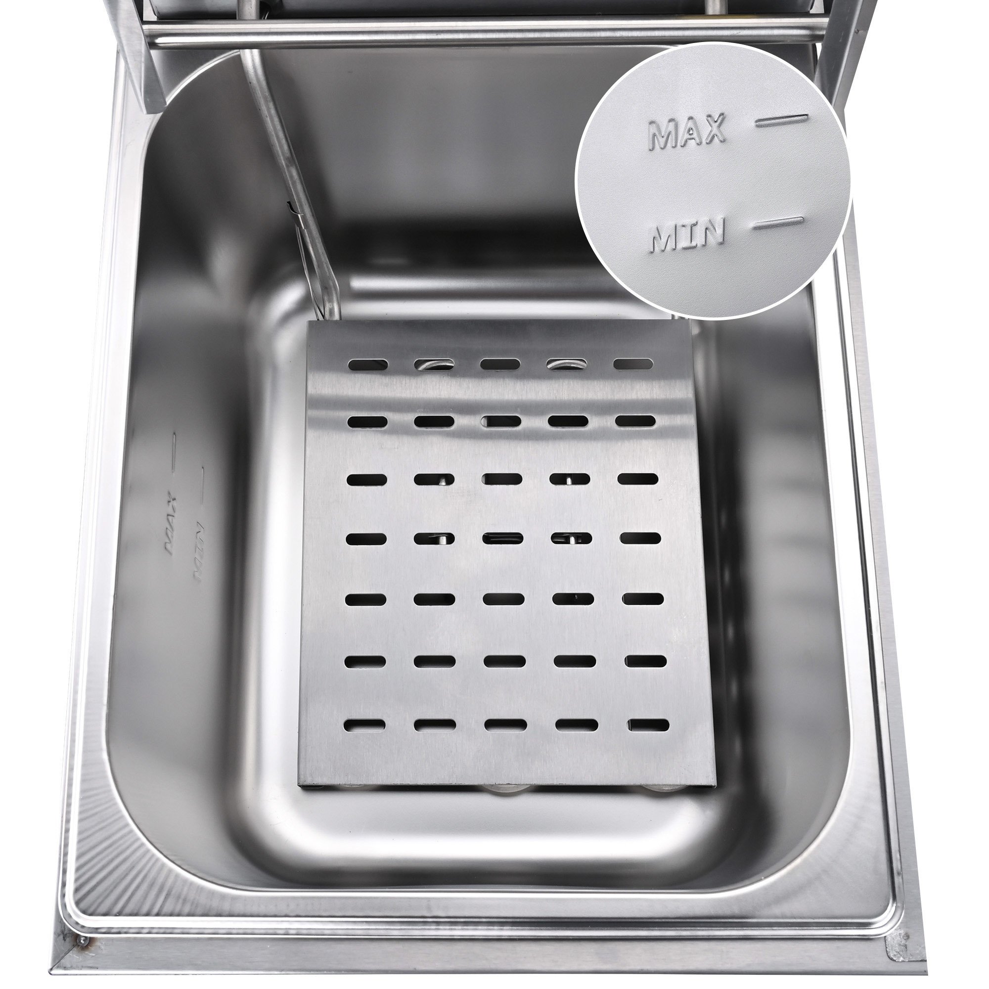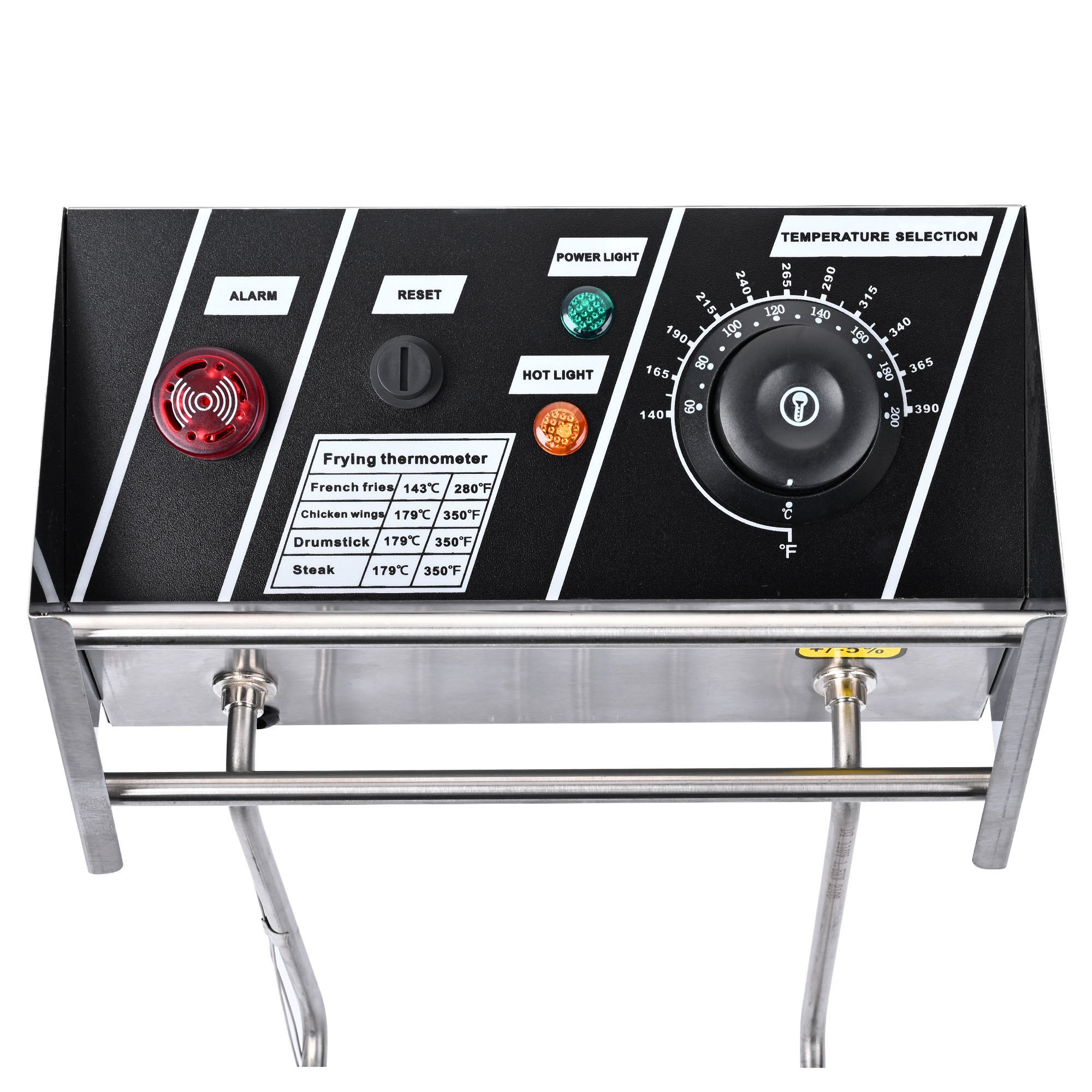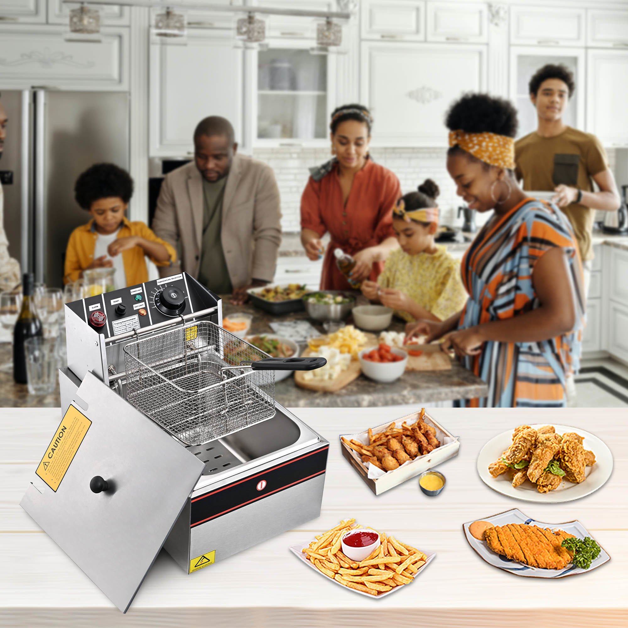 - Durable & Large Capacity - Made of heavy duty 0.6mm thickened stainless steel for enhanced durability; sturdiness and anti-corrosion; Includes a tank with 12 L capacity for holding 5 pairs of wings or 3 Lbs chips; ideal for frying lots of food; maximumly satisfying commercial use