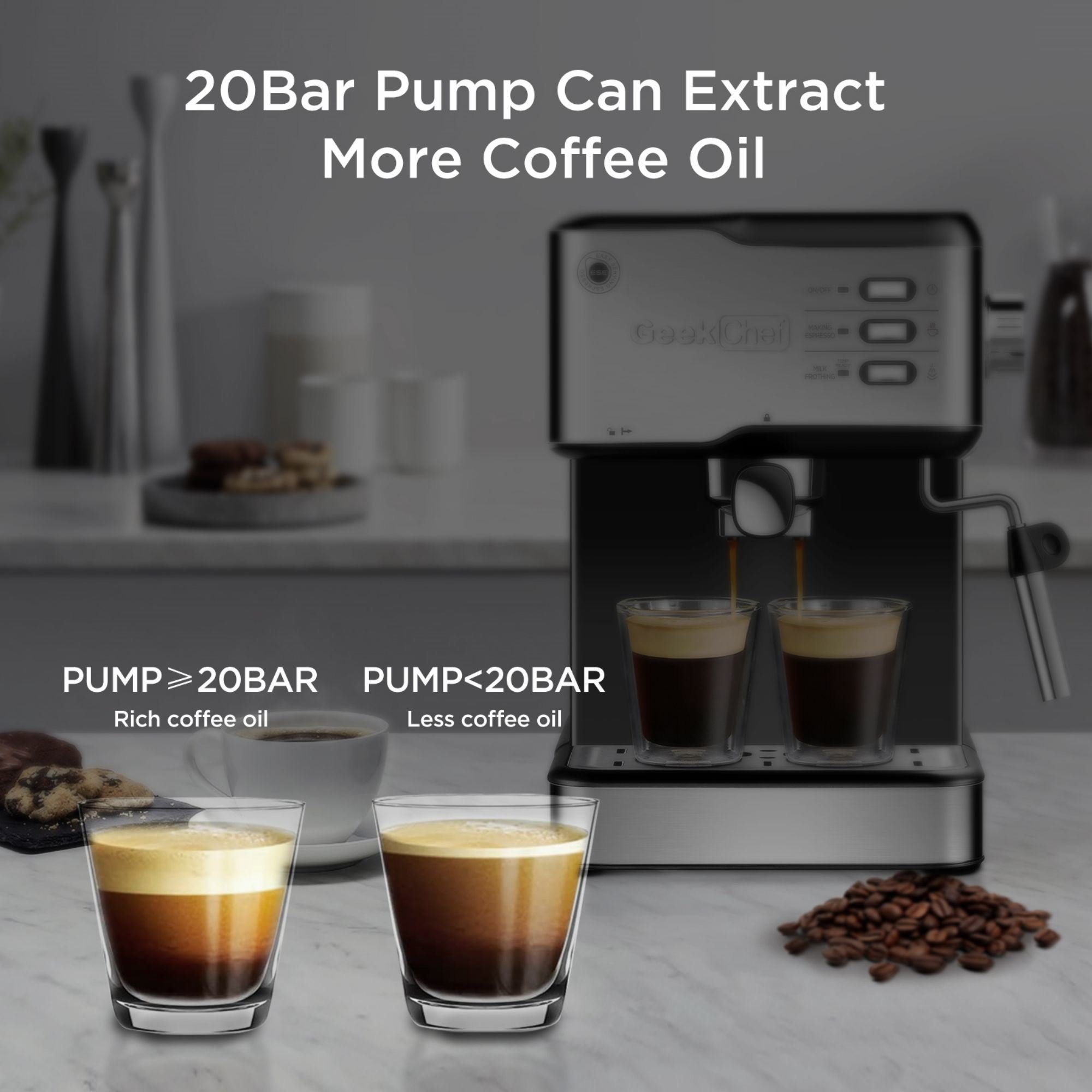 Home > Geek Chef Espresso Machine - 20 Bar Pump Coffee Maker with Milk Frother