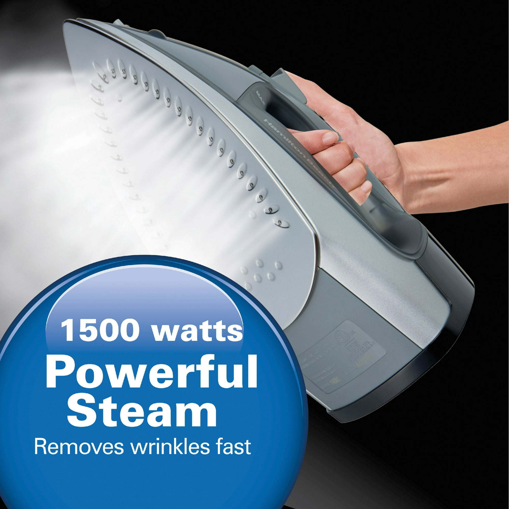 The Hamilton Beach Retractable Cord Iron has a stainless steel soleplate and 1500 watts of powerful steam. Adjustable steam with spray/blast, as well as vertical steam to remove wrinkles while clothes are still on the hanger.