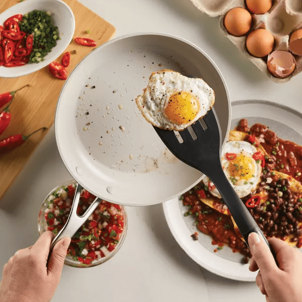 Made for everyday cooking and beautiful kitchen-to-table presentations, Hard Anodized Ceramic Cookware is finished with an easy-clean, ceramic nonstick interior and a durable hard-anodized exterior, crafted with thick, forged aluminum bases and rims to deliver excellent heat conduction and durability. This roomy 12.25-inch frying pan is 8x harder than aluminum for lasting performance and features a long-lasting ceramic nonstick, so you'll need less oil (for healthier cooking) but still get fast and easy cleanup of sticky and saucy recipes. Oven safe to 500ºF, this ceramic nonstick skillet is finished in trend-right color to suit the contemporary kitchen, features a double-riveted handle for control from stove to oven to table, and will have your kitchen equipped to make the most of any meal.