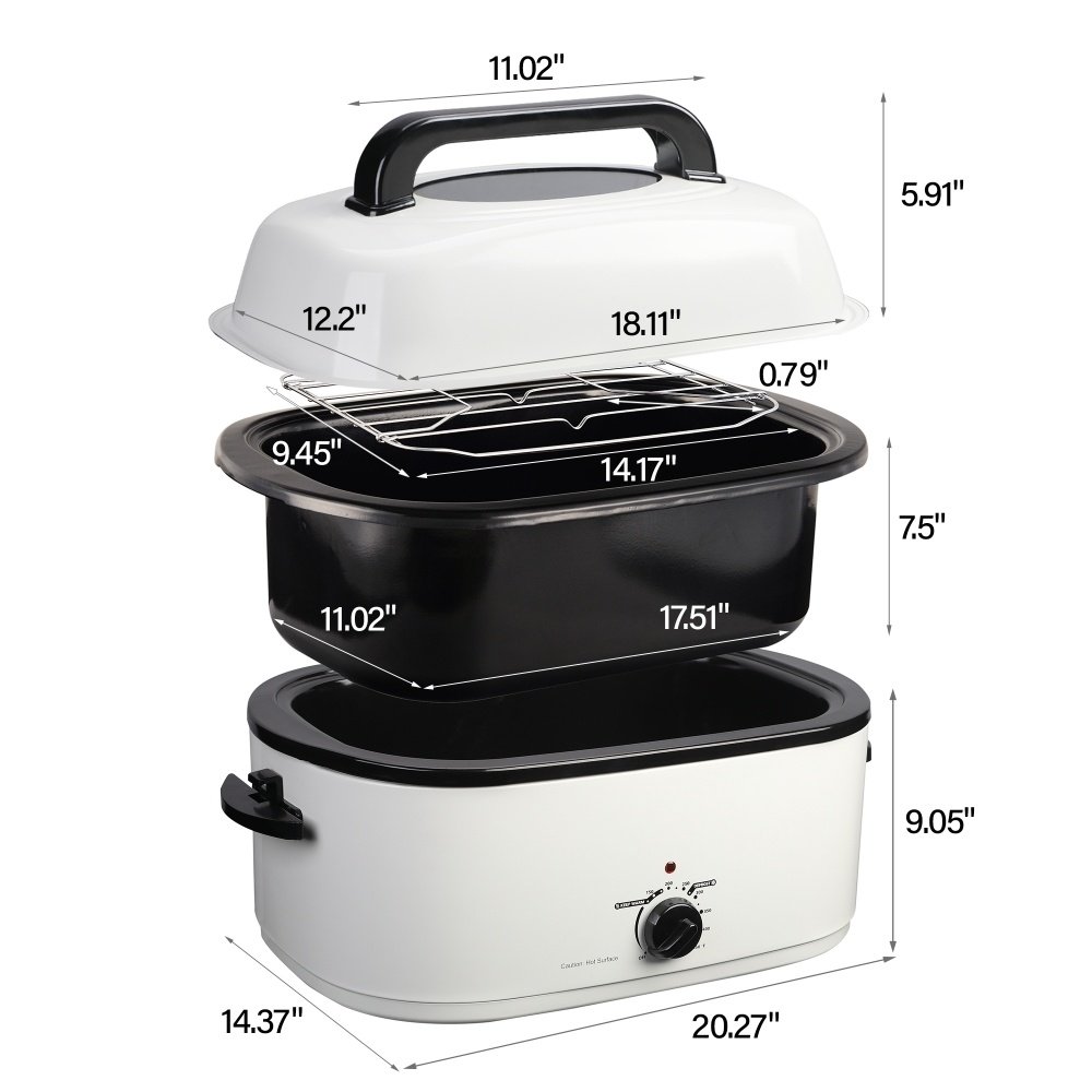 Kitchen White 20 QT Stainless Steel Chicken Electric Turkey Roaster With See-through Lid
