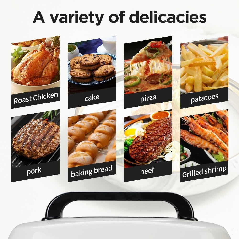 Product Design:Enjoy precise temperature control from 150°F to 450°F, allowing for various cooking functions such as roasting meats(turkeys, chickens, beef), baking, slow cooking, defrosting and keeping food warm.